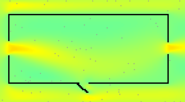 I like to use simulators such as this one to play around with scenarios, especially if I’m struggling to figure out why a specific hide was hard to find. I can replicate the environment here, to view the airflow and aid in my understanding. In this photo, I’m viewing the air speed in a room with a good cross-breeze.